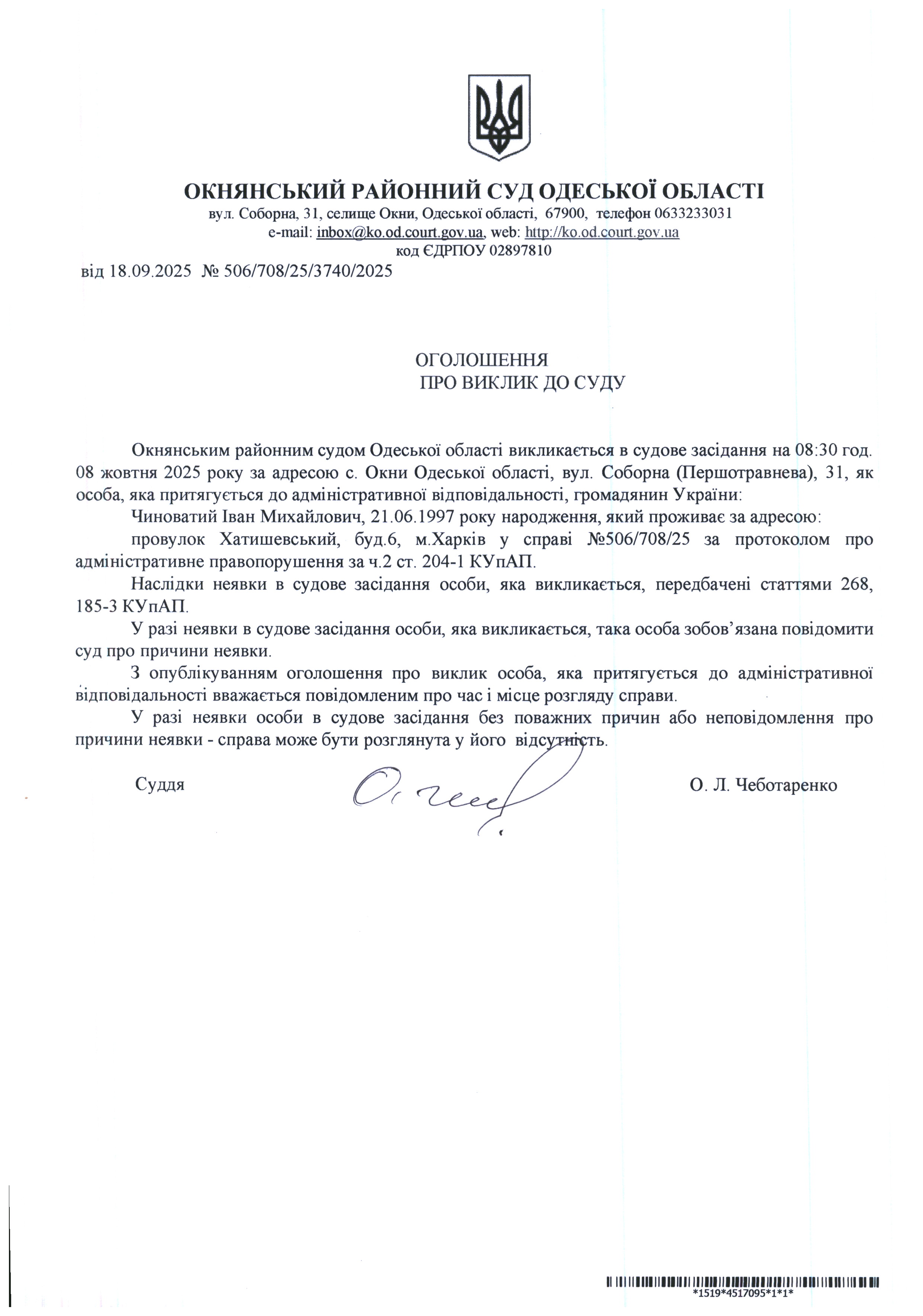 Увага, суд перейменовано з Красноокнянський районний суд Одеської області