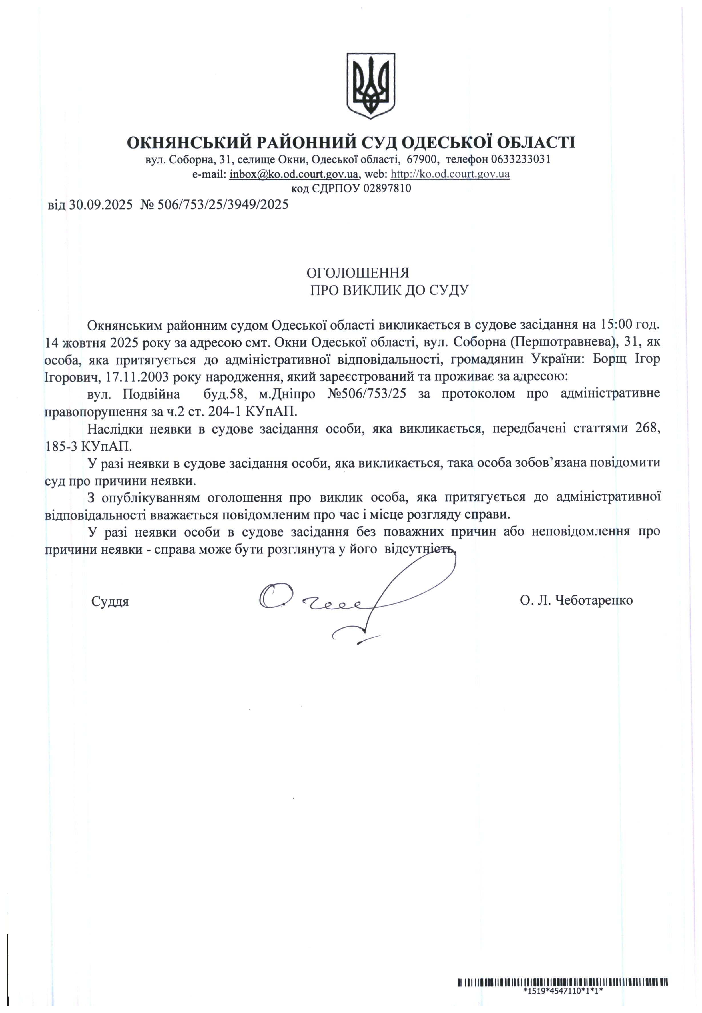 Увага, суд перейменовано з Красноокнянський районний суд Одеської області