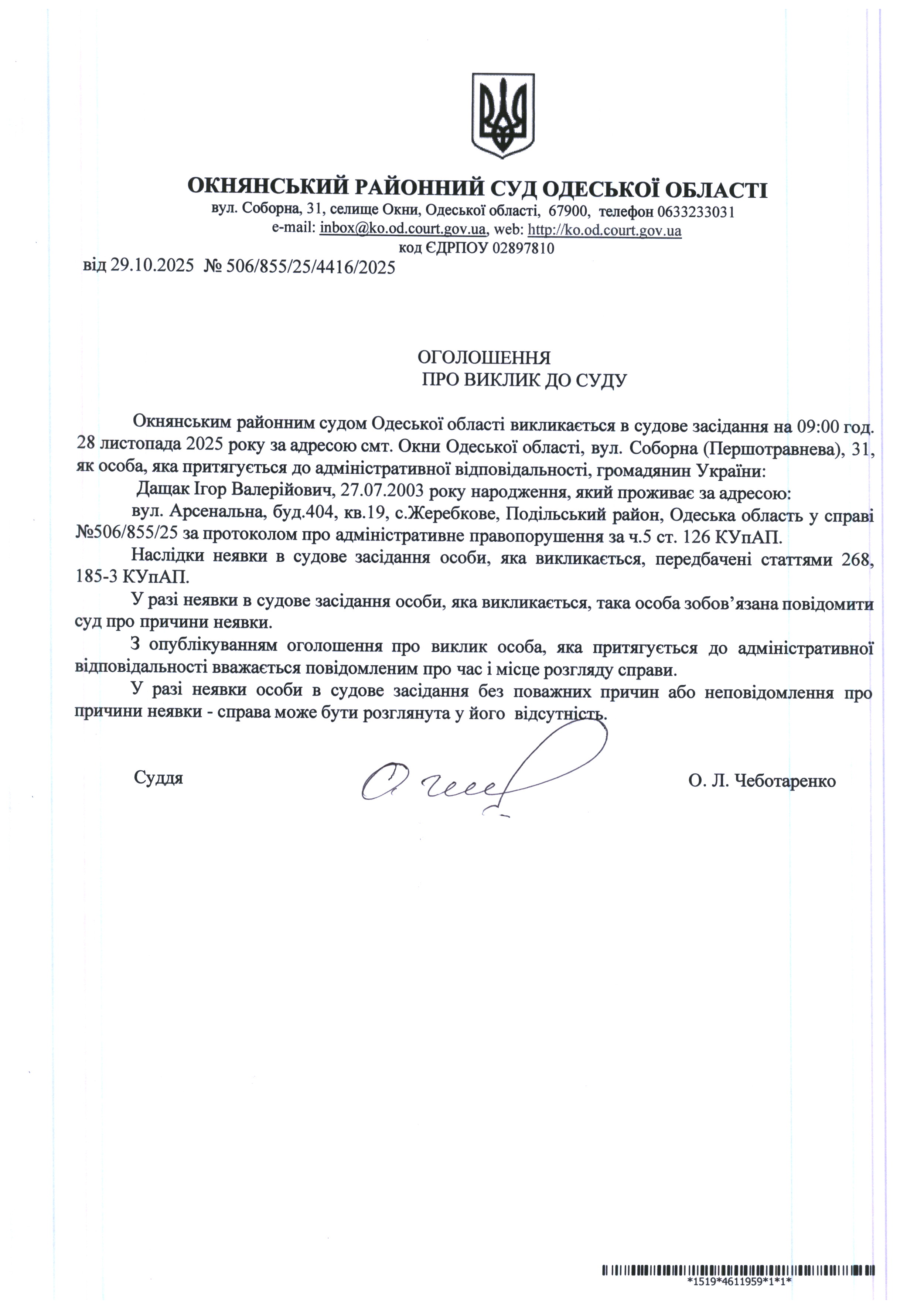 Увага, суд перейменовано з Красноокнянський районний суд Одеської області