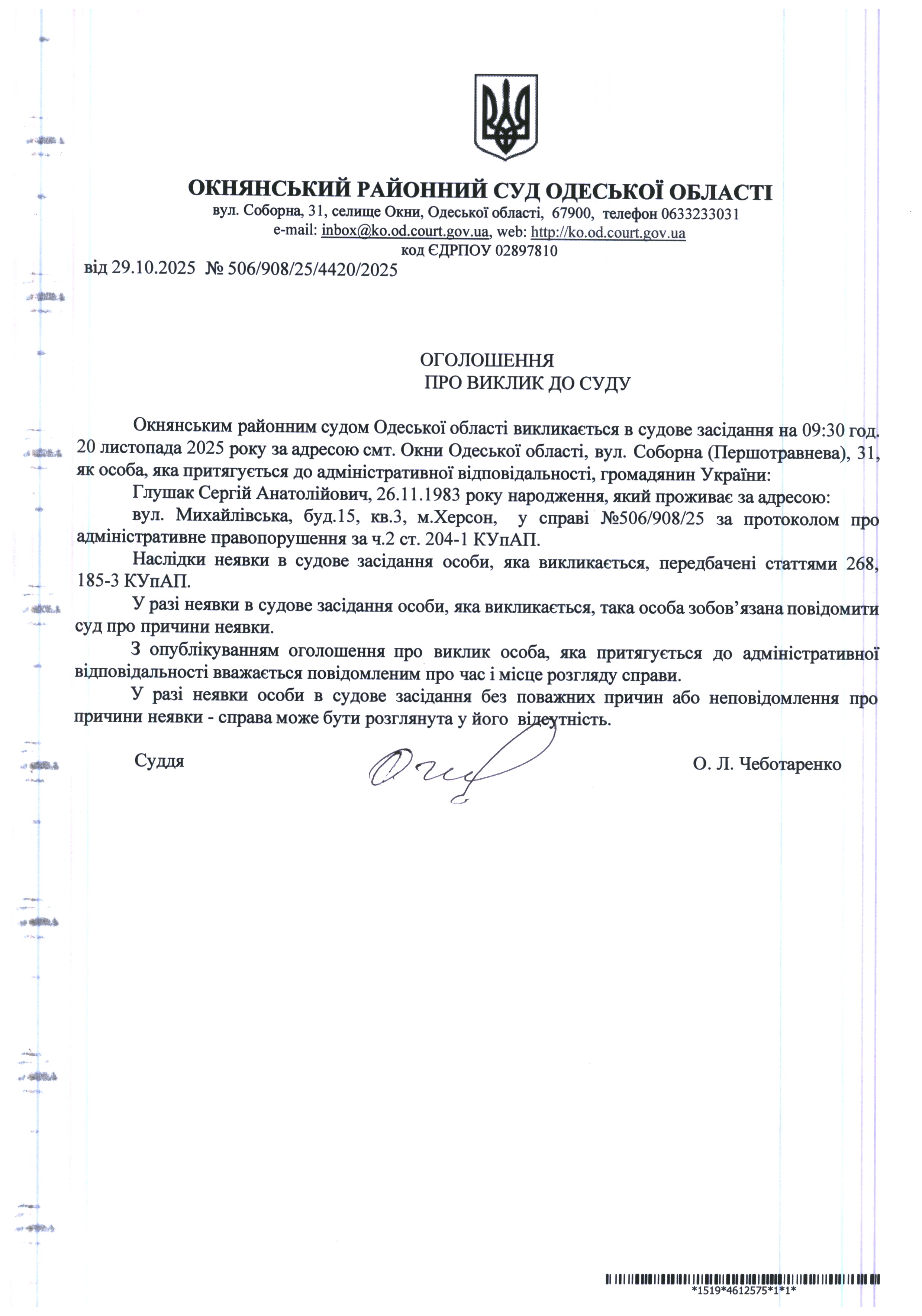 Увага, суд перейменовано з Красноокнянський районний суд Одеської області