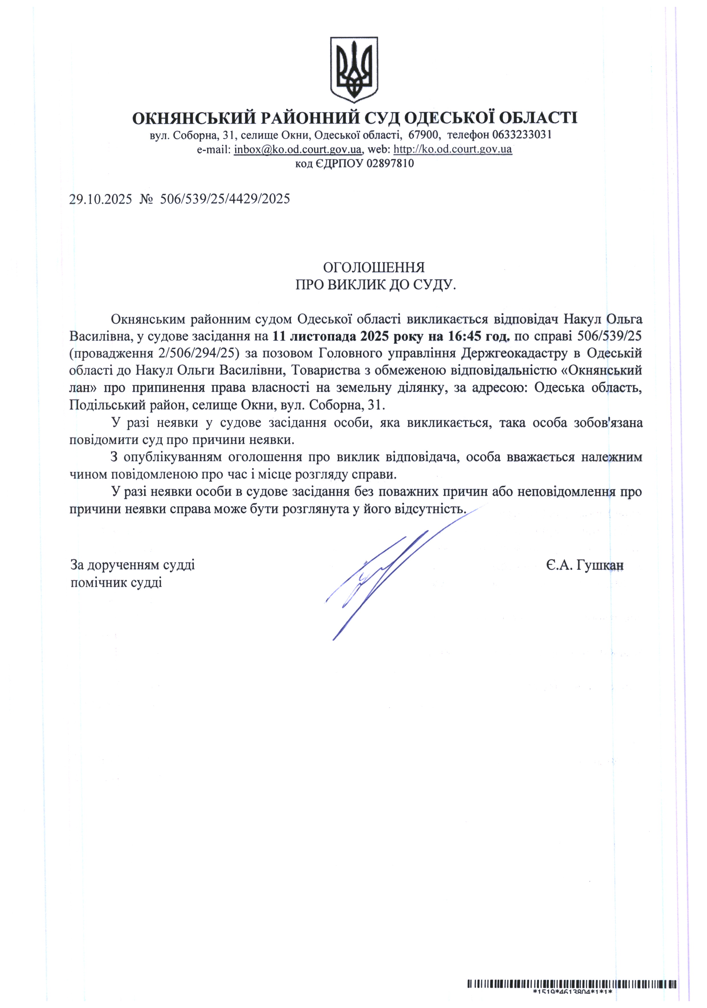 Увага, суд перейменовано з Красноокнянський районний суд Одеської області