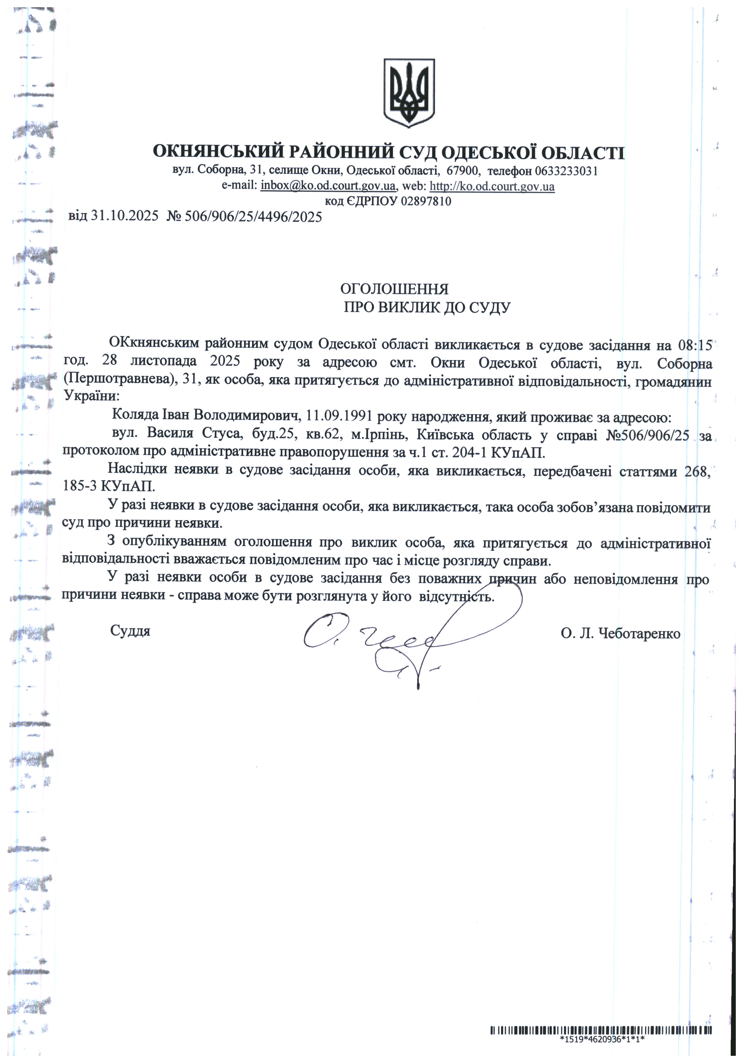 Увага, суд перейменовано з Красноокнянський районний суд Одеської області