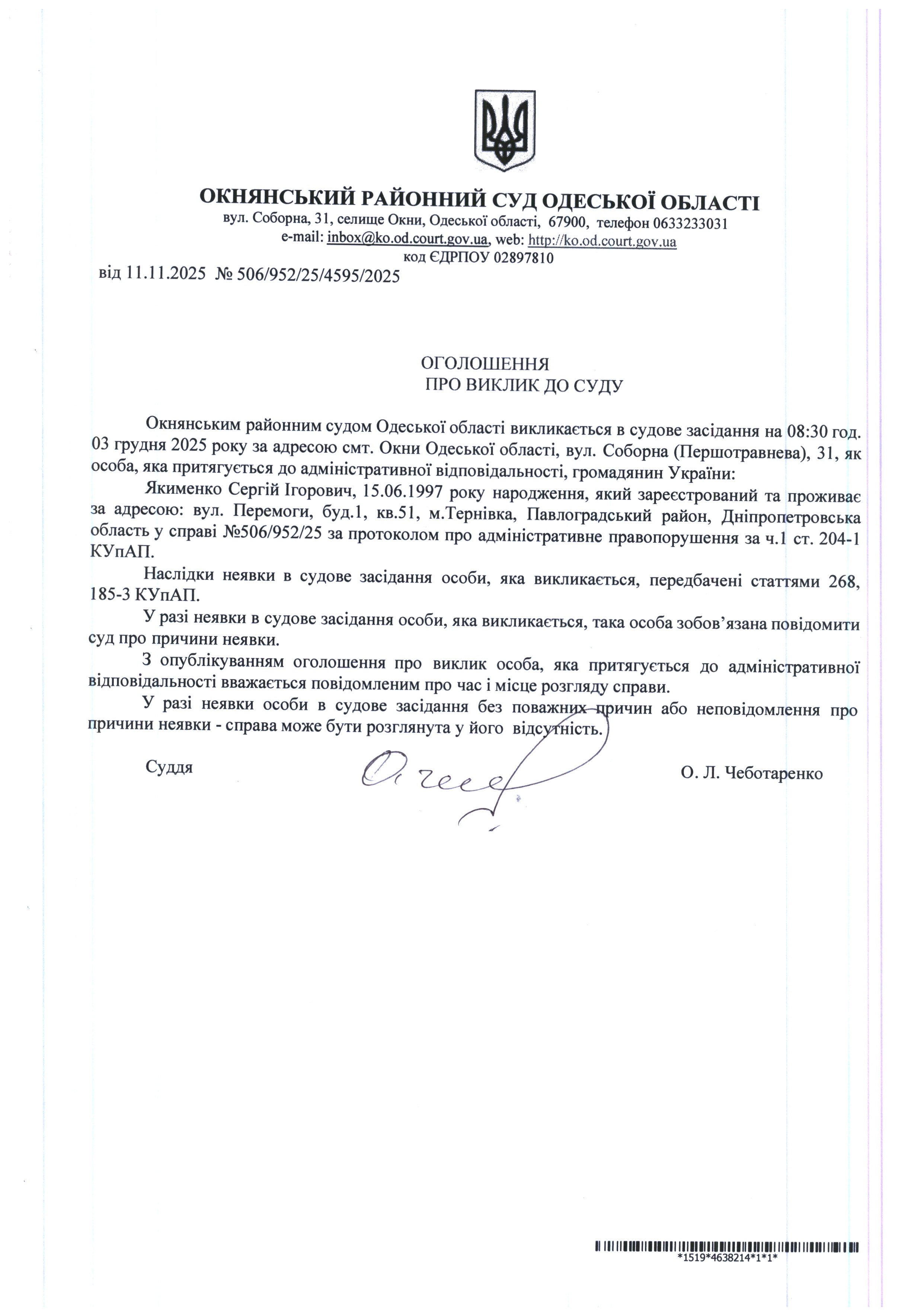 Увага, суд перейменовано з Красноокнянський районний суд Одеської області