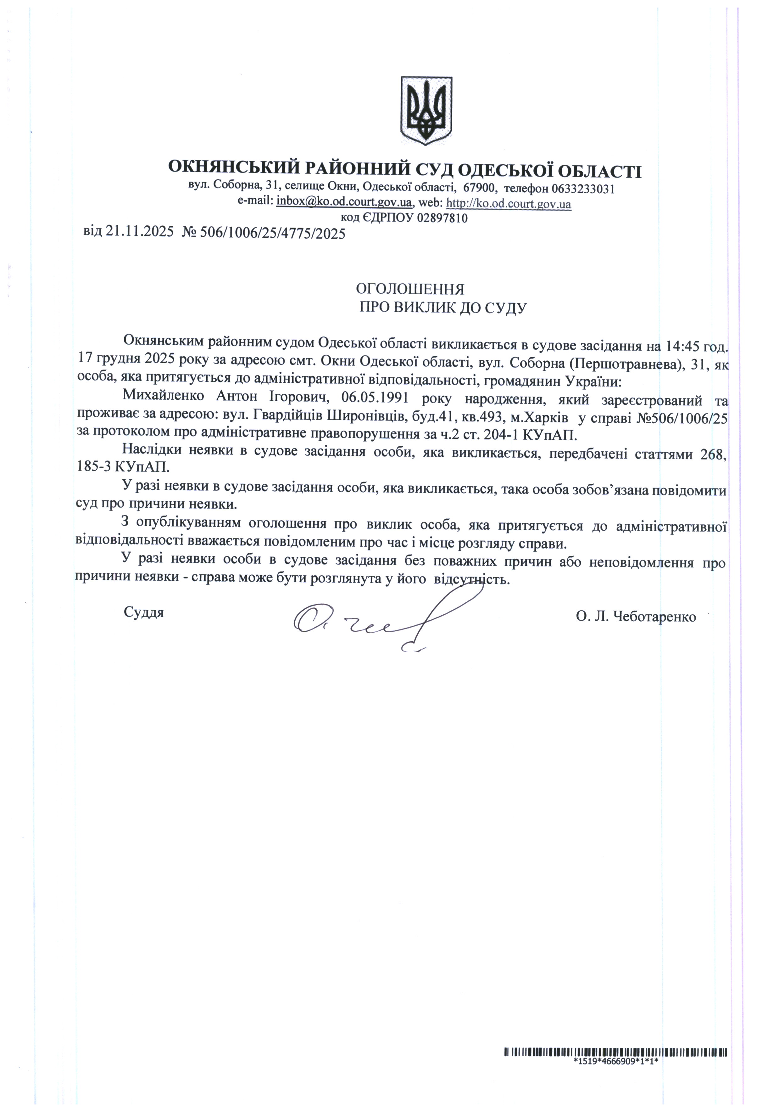 Увага, суд перейменовано з Красноокнянський районний суд Одеської області