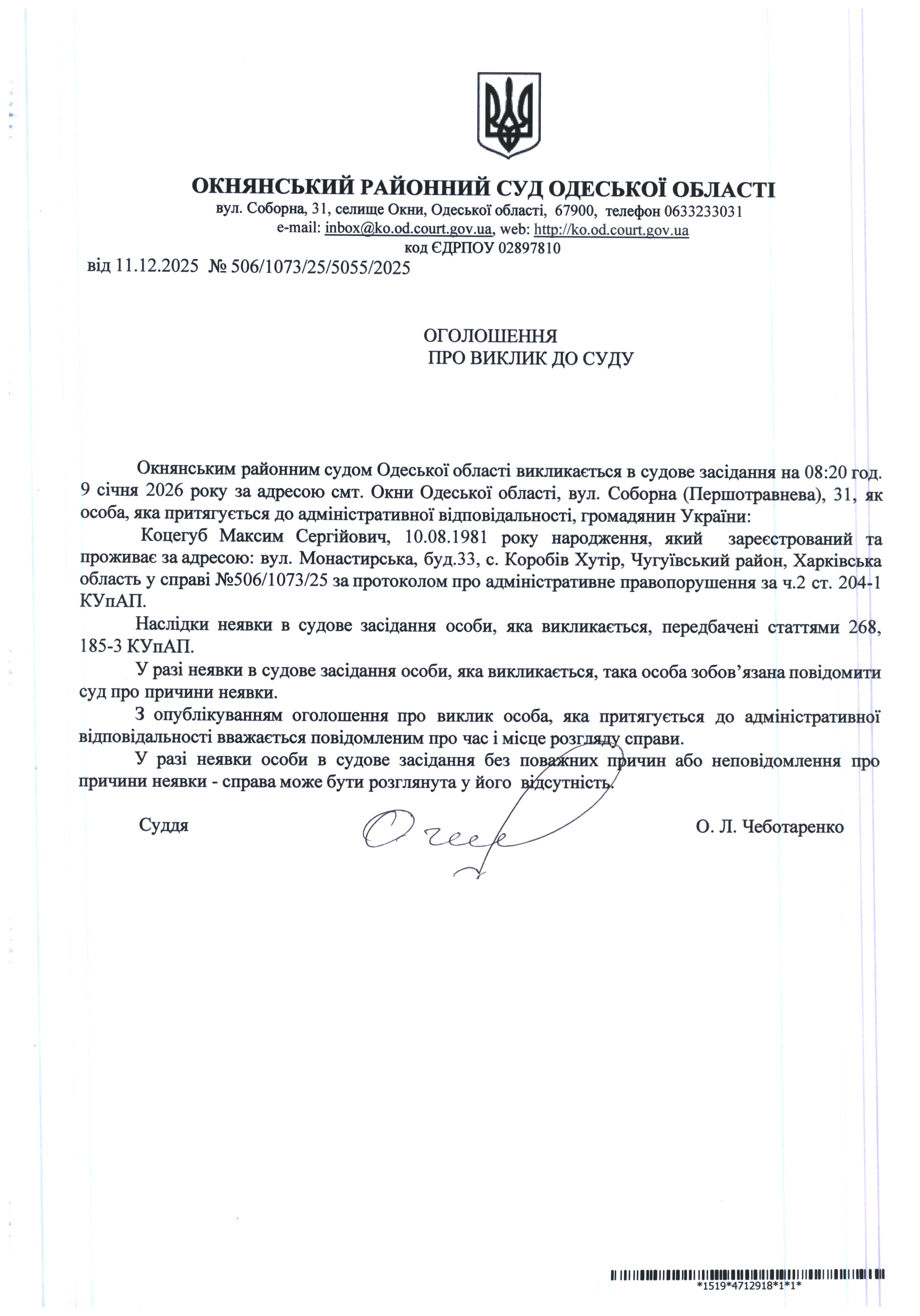 Увага, суд перейменовано з Красноокнянський районний суд Одеської області