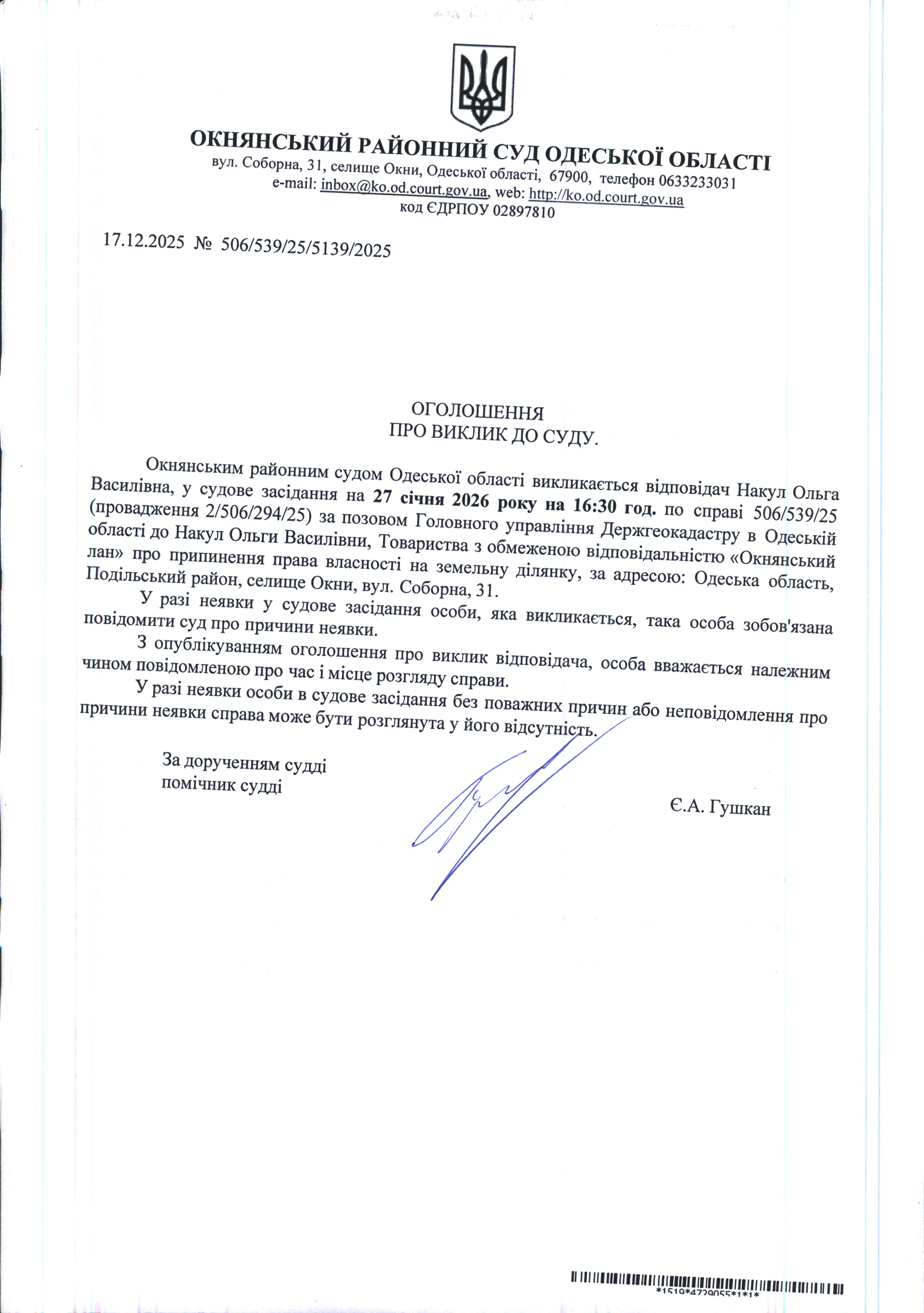 Увага, суд перейменовано з Красноокнянський районний суд Одеської області