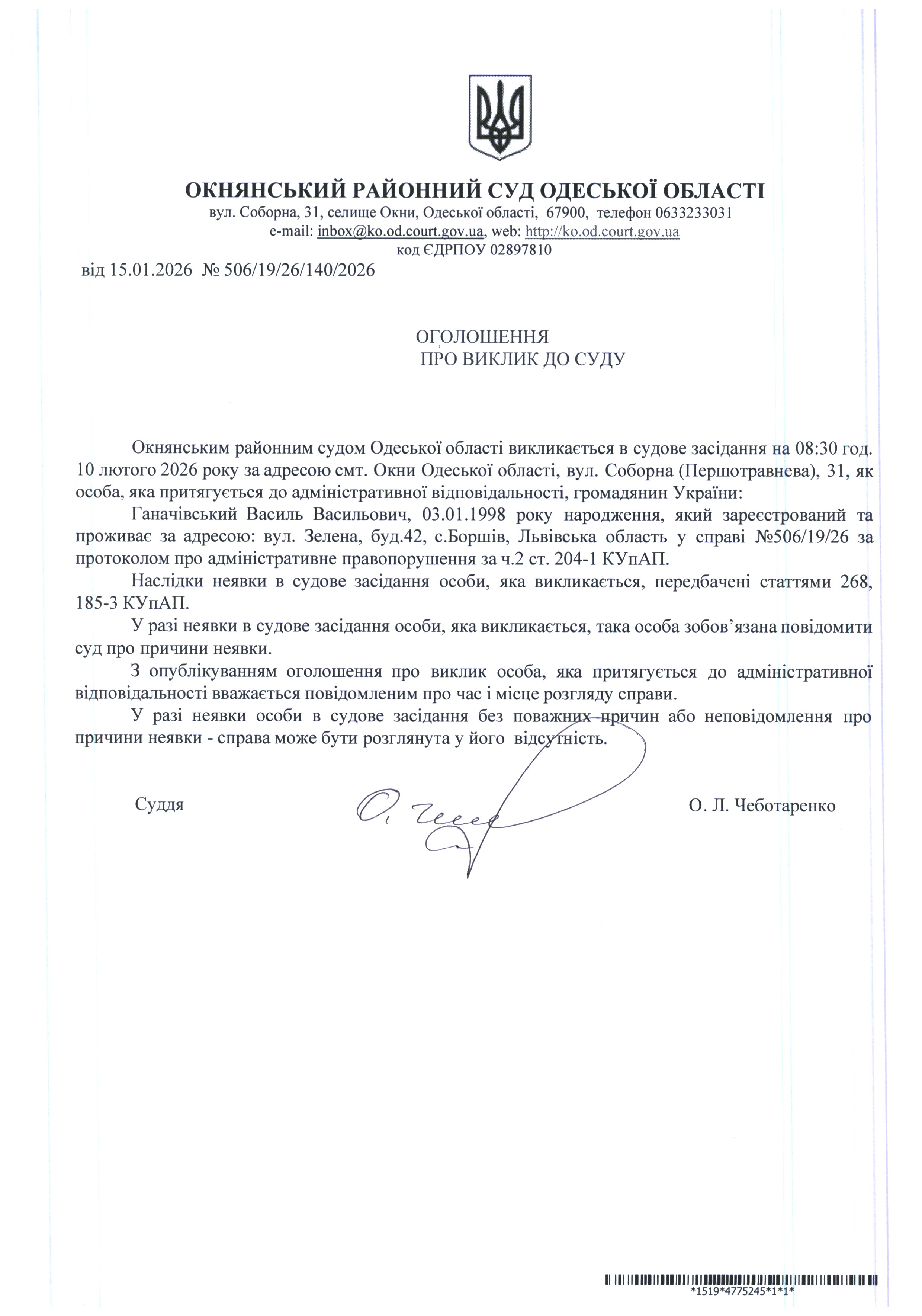 Увага, суд перейменовано з Красноокнянський районний суд Одеської області