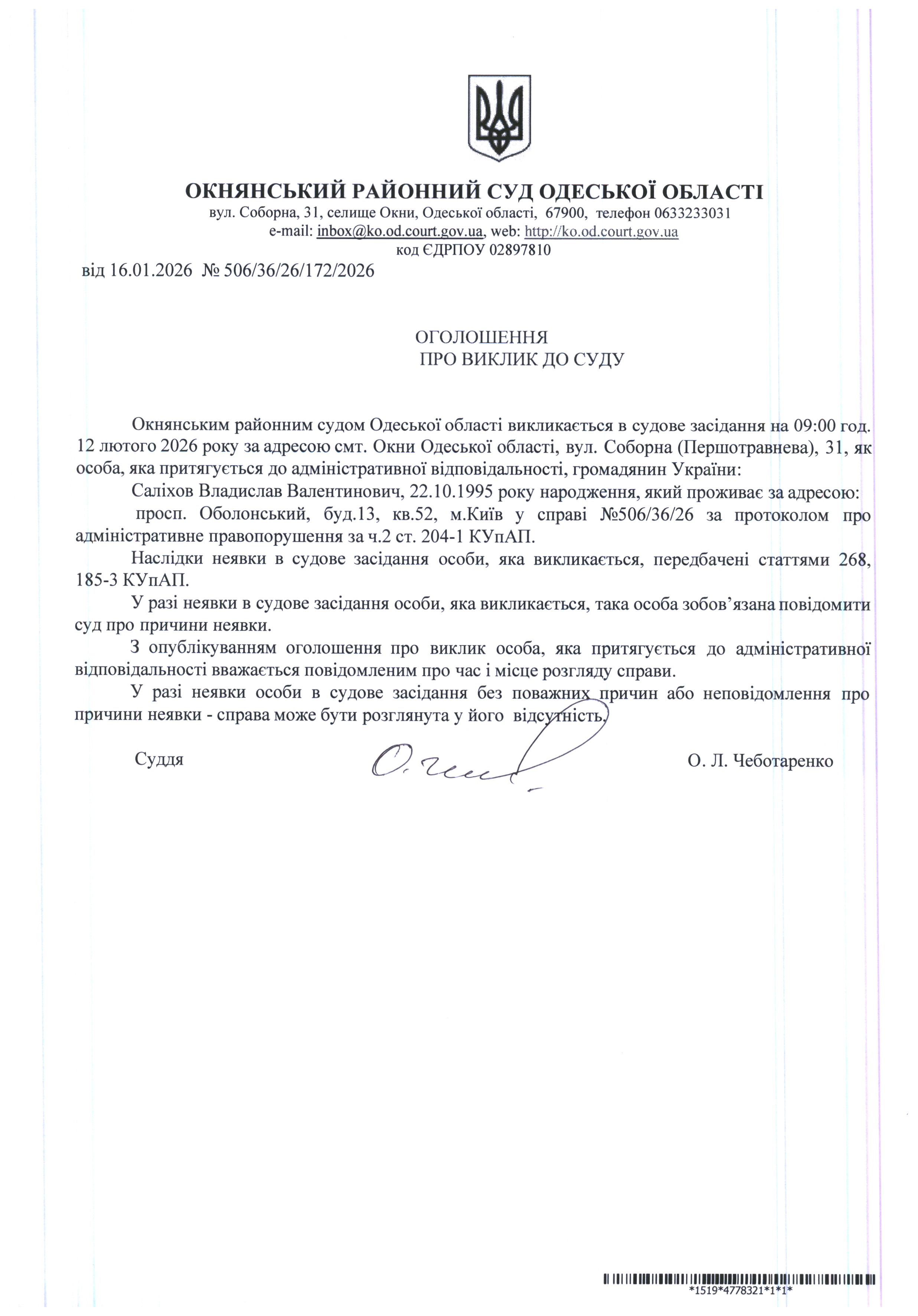 Увага, суд перейменовано з Красноокнянський районний суд Одеської області