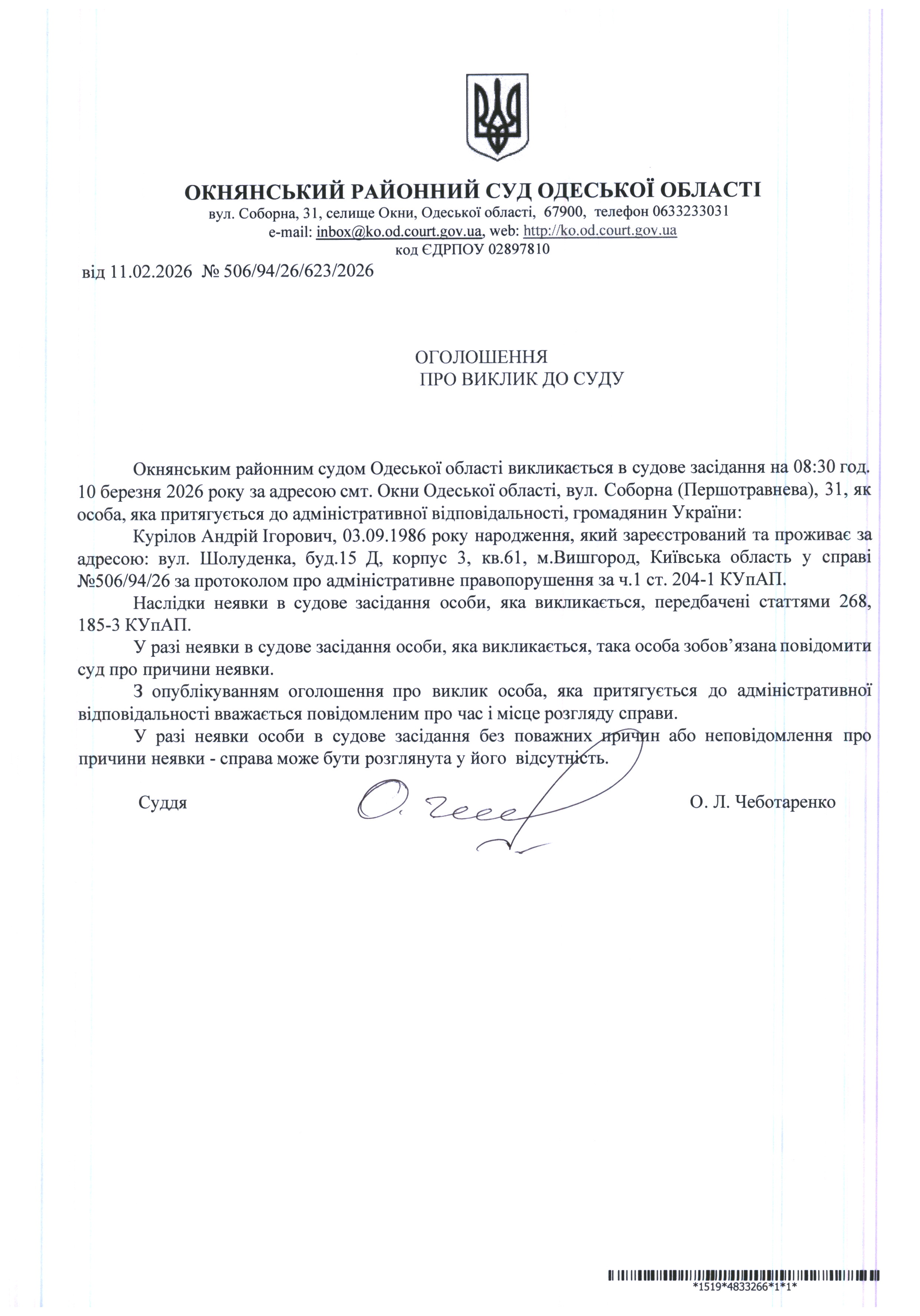 Увага, суд перейменовано з Красноокнянський районний суд Одеської області