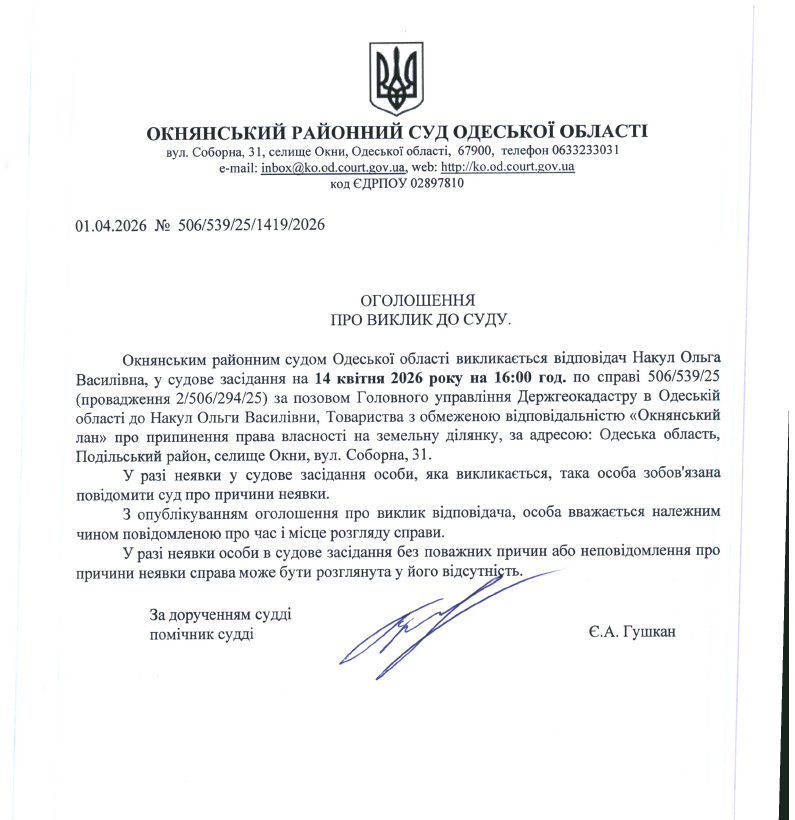 Увага, суд перейменовано з Красноокнянський районний суд Одеської області