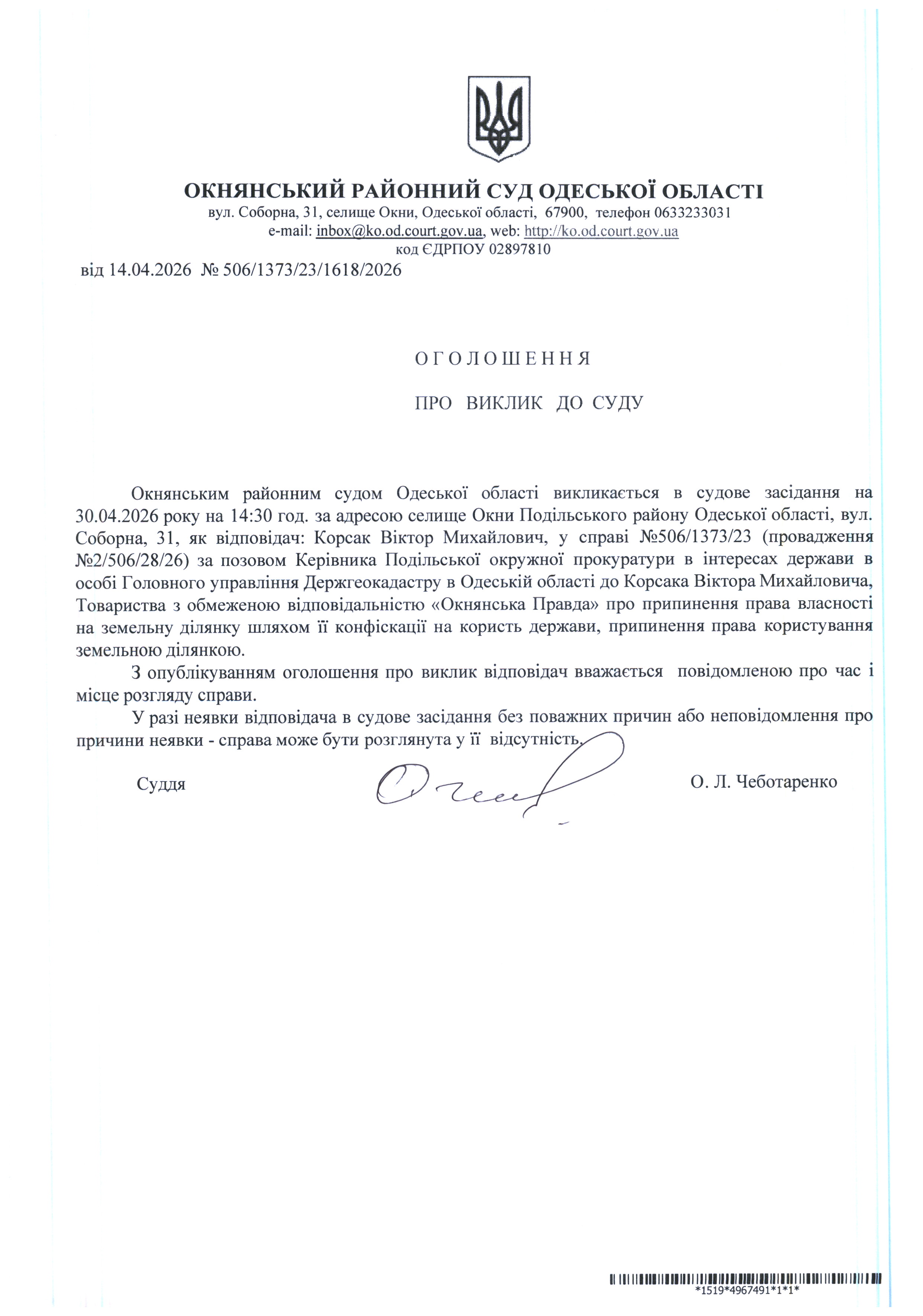 Увага, суд перейменовано з Красноокнянський районний суд Одеської області