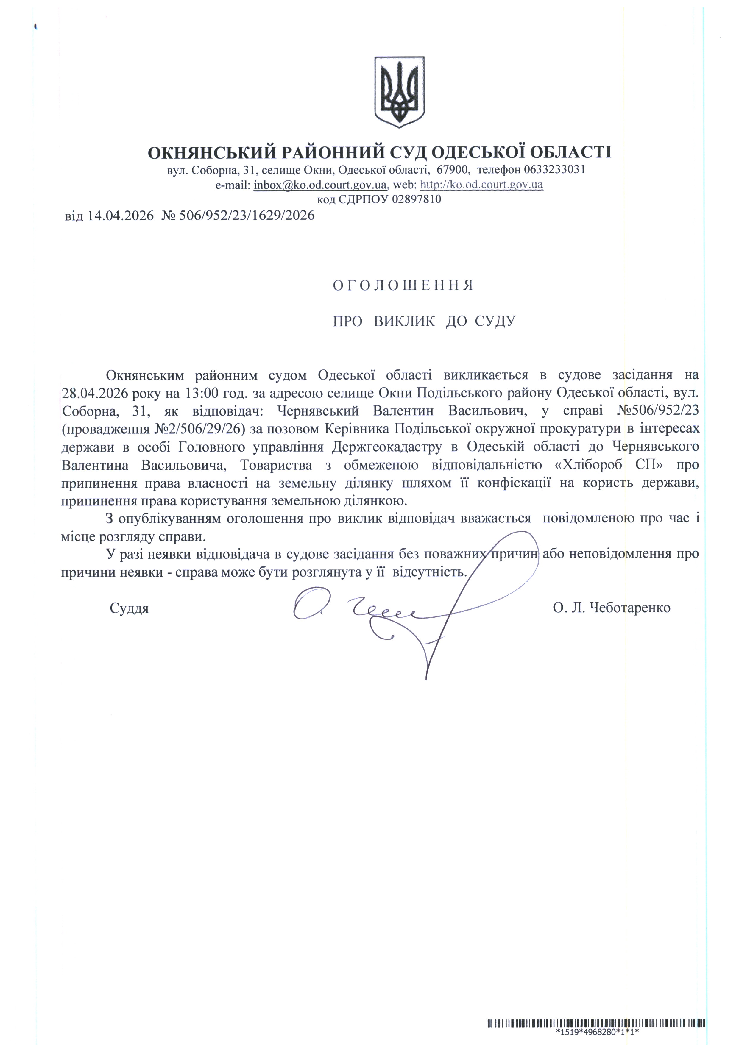 Увага, суд перейменовано з Красноокнянський районний суд Одеської області
