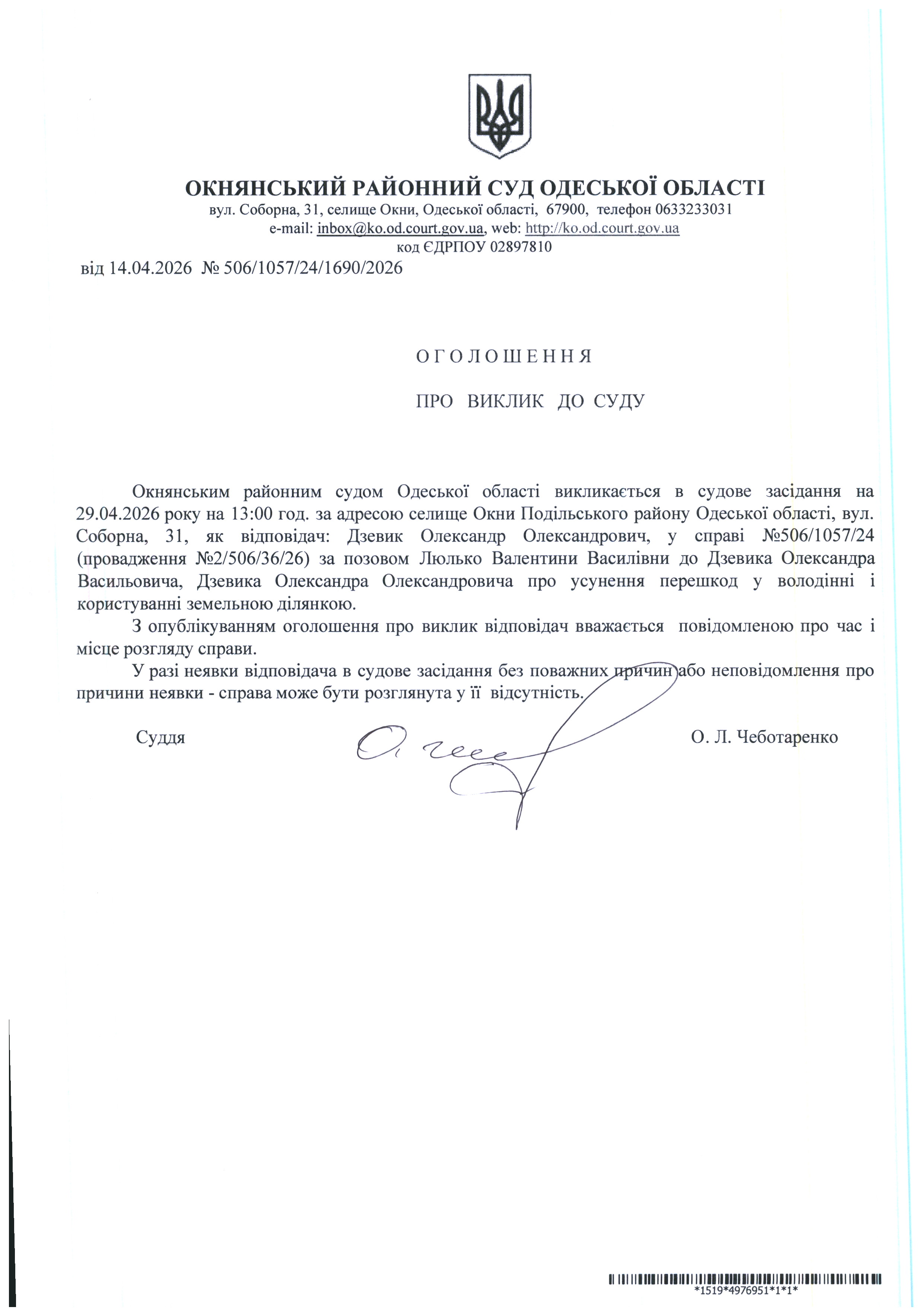 Увага, суд перейменовано з Красноокнянський районний суд Одеської області