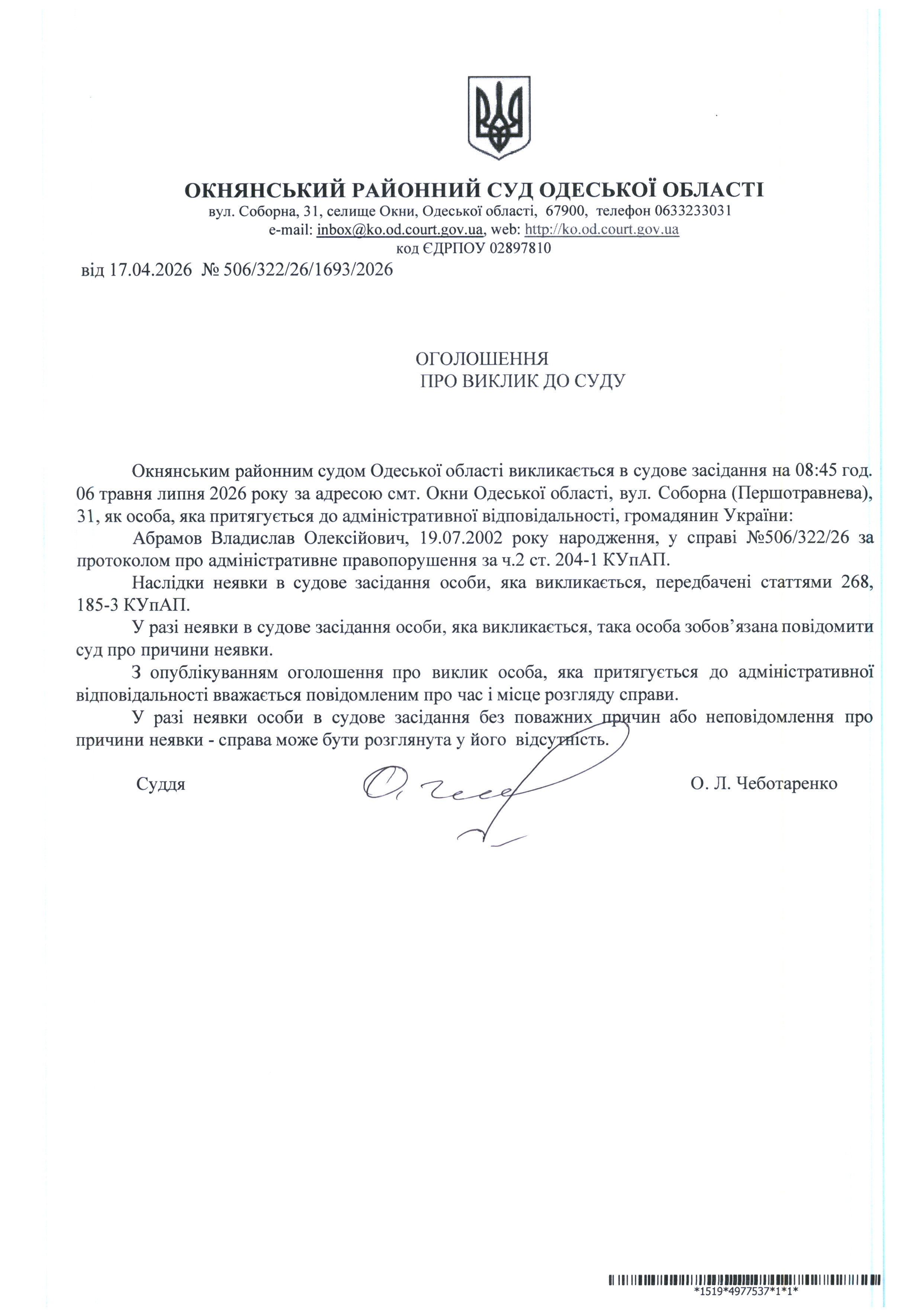 Увага, суд перейменовано з Красноокнянський районний суд Одеської області